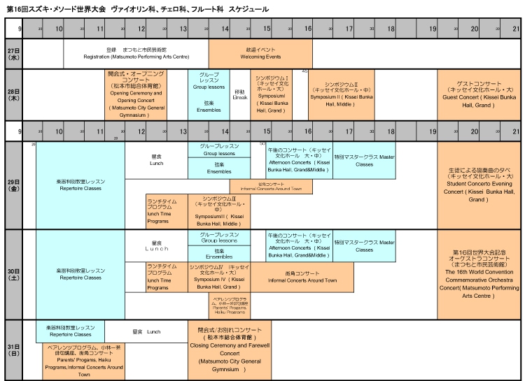●ヴァイオリン科・チェロ科・フルート科・声楽科 生徒スケジュール