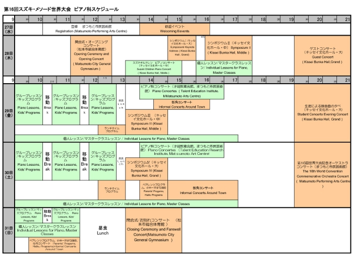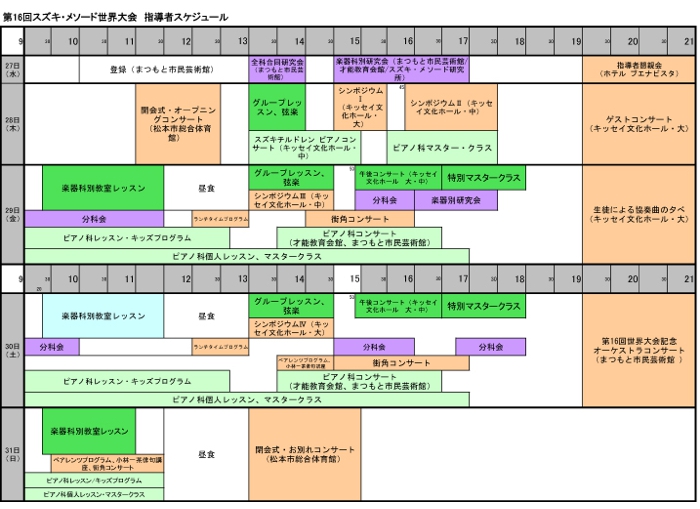 スズキ・メソード三大行事のグランドコンサート、夏期学校、全国指導者研究会のすべての要素を含みつつ、